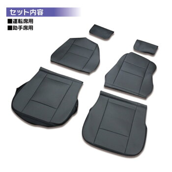 【適合車種】 軽トラック 汎用 【カラー】 ・ベースカラー:ブラック ・ステッチ:ブラック ・高品質PVCレザー使用 【セット内容】 6Pセット ・運転席用(背/座/ヘッドレスト) ・助手席用(背/座/ヘッドレスト) ※取り付け説明書は付属しておりません。