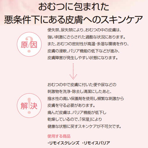 ・便失禁などでかぶれやすい周囲に塗り、撥水効果で刺激物から肌を保護します。